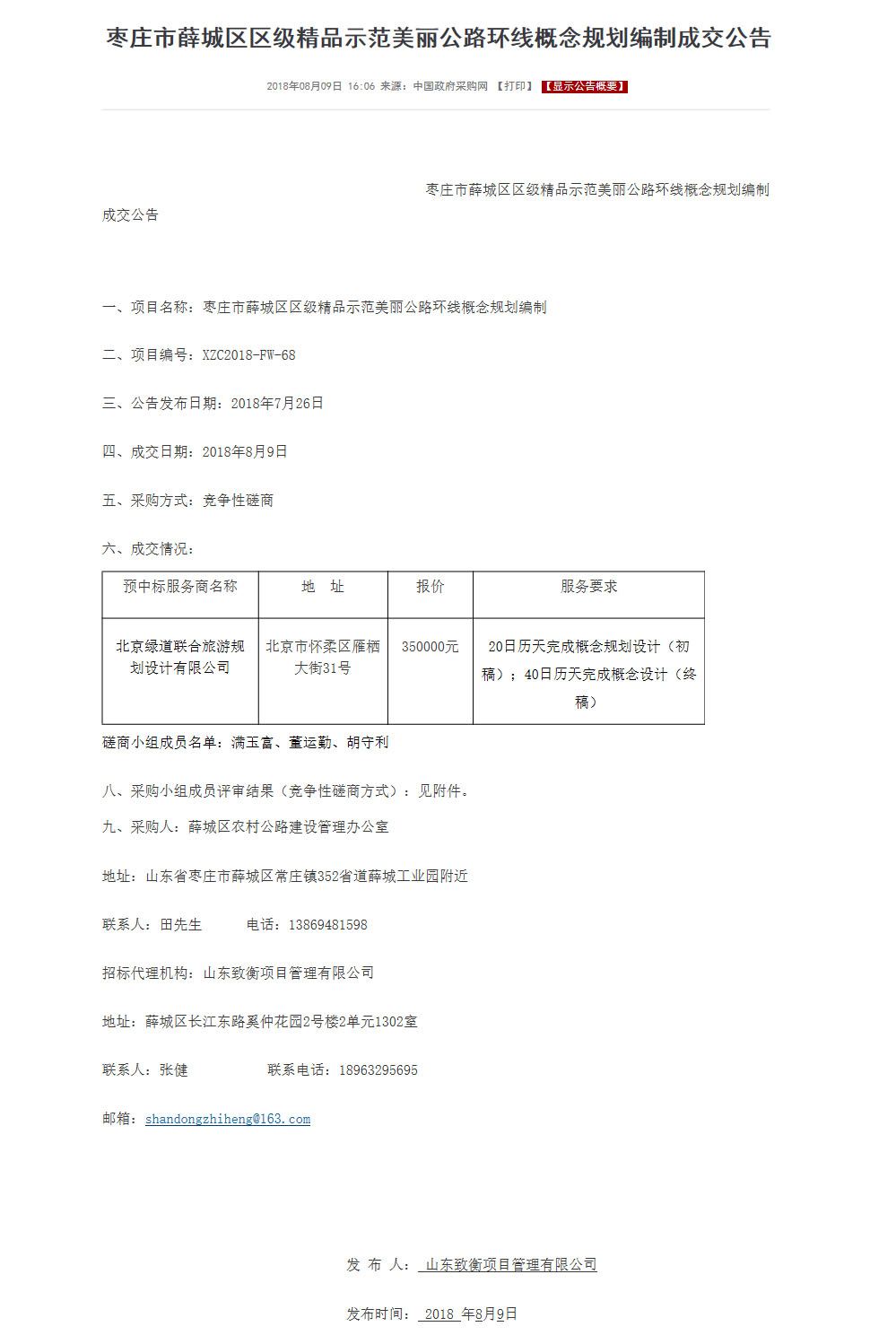 北京綠道聯(lián)合旅游規(guī)劃公司成功中標(biāo)《棗莊市薛城區(qū)區(qū)級精品示范美麗公路環(huán)線概念規(guī)劃項目》