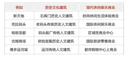 1)重現(xiàn)特色人文建筑空間(功能和空間)的方式:保留修復(fù),帶給消費(fèi)者建筑的歷史感;創(chuàng)新融合,帶給消費(fèi)者建筑的情景感